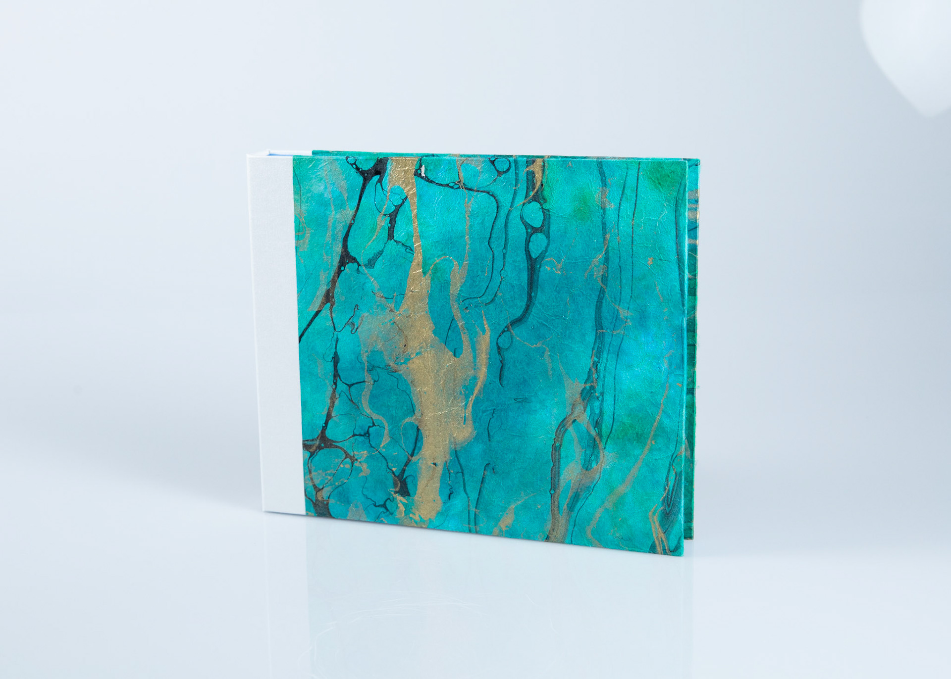 Slotted Accordion, paper, binders board, ribbon, 5 x4 inches